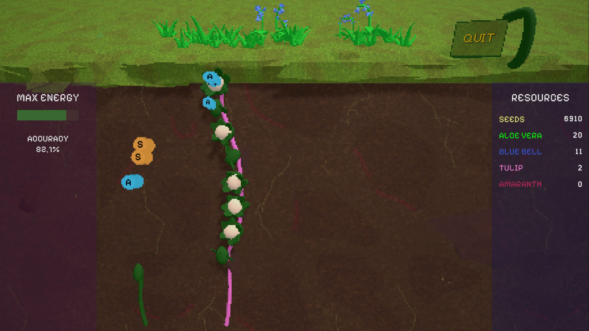 - Vinelines with no failed keystrokes plant a flower on the surface.